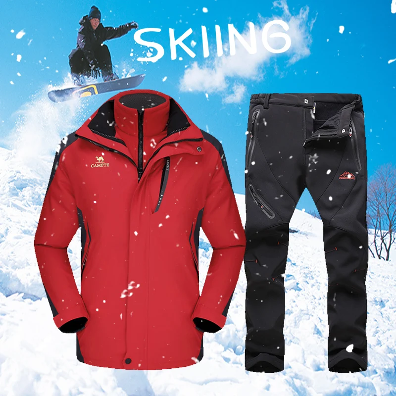 Ski Suit For Men Waterproof Windproof Thicken Warm Ski Jacket Pants Male Winter Outdoor Mountain Sn